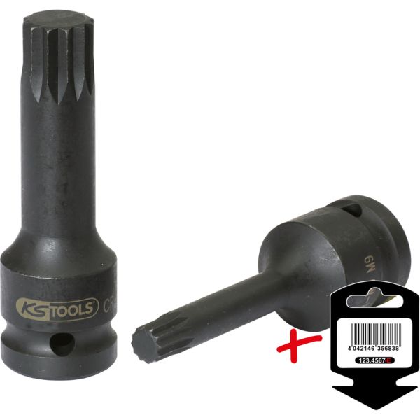 1/2" Kraft-Bit-Stecknuss Vielzahn, lang, M10 auf Hänger
