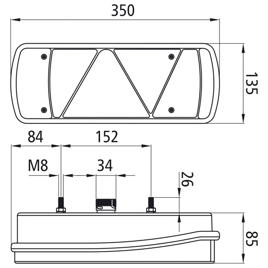 Dreieckrückstrahler, Stand-und Bremslicht in LED,