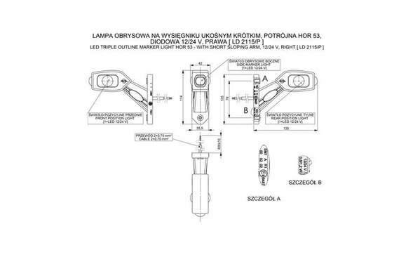 Die MB-3632RWA aus der MB-3600 serie Horpol ist eine funktionelle LED Begrenzungsleuchte für Fahrzeuge mit einem Spannungsbereich von 12-24 V. Dieses Modell ist für die Aufbaumontage konzipiert und wird mit einem 45 cm langen Kabel mit offenem Kabelende geliefert. Das Breitenmaß von 135x105x42 mm und das flexible Gehäuse aus Gummi sorgen für einen dauerhaften Einsatz auch unter anspruchsvollen Bedingungen. Diese LED Begrenzungsleuchte kombiniert die Funktionen: Rückfahrscheinwerfer und Seitenmarkierungsleuchte. Dank der Polycarbonat-Linse und der integrierten roten, weißen und amberfarbenen LED liefert die Leuchte helle Kennleuchten. Die Lampe entspricht der Schutzklasse IP68 und ist damit vollständig staub- und wasserdicht. Außerdem ist diese Begrenzungsleuchte nach CE, ECE-R10, ECE-R7 und ECE-R91 zertifiziert, was ihre Verwendbarkeit auf europäischen Straßen unterstützt.