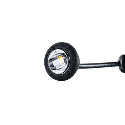 Diese Positionsleuchte der Serie MV-4500 von TRALERT® ist für Fahrzeuge mit einem Spannungsbereich von 12-24 V geeignet. Dank ihrer kompakten Abmessungen von ø27,5 x 20,5 mm lässt sie sich leicht in eine Vielzahl von Karosseriedesigns integrieren. Sowohl das Gehäuse als auch die Linse bestehen aus Polycarbonat, was zu einer hohen Stoßfestigkeit und einer langen Lebensdauer unter wechselnden Bedingungen beiträgt. Diese LED Umrissleuchte erfüllt die Funktion: Seitenmarkierungsleuchte. Die amberfarbene Beleuchtung sorgt für eine klare Konturmarkierung des Fahrzeugs. Die Leuchte ist mit einem offenen Kabelende ausgestattet und wird mit einem 200 cm langen Kabel zur flexiblen Montage geliefert. Die Lampe ist vollständig staub- und wasserdicht nach IP67 und entspricht den ECE-Zertifizierungen CE, ECE-R10 und ECE-R148.