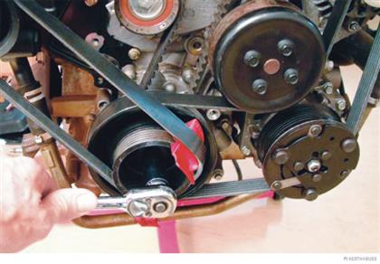 Keilrippenriemen die keinen Riemenspanner haben.