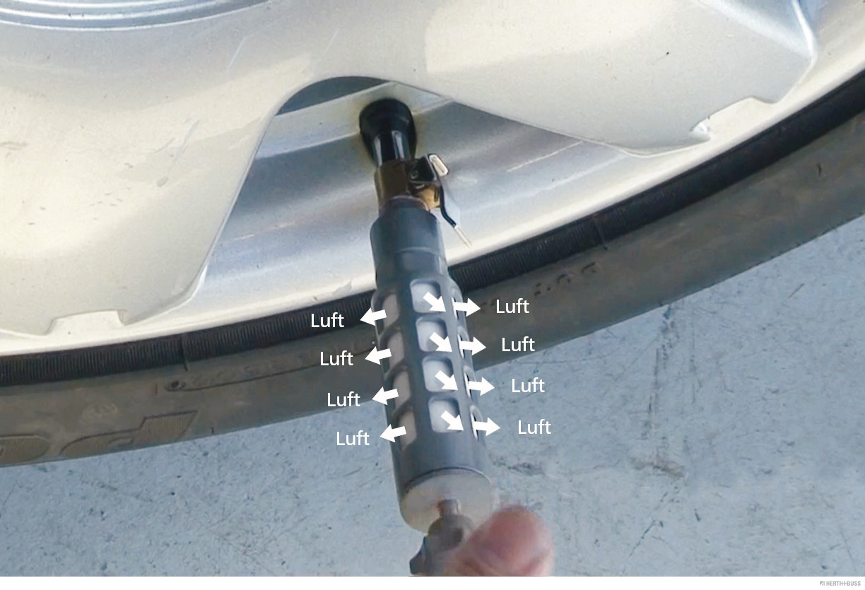 welches beim Lösen des Reifenventils z.B. beim Auto,