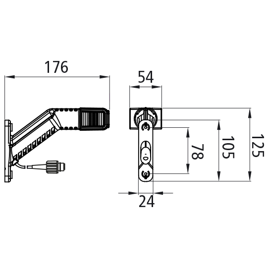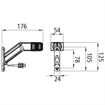 Superpoint IV LED, 12/24 V, rechts, rot/weiß/gelb, Kabel